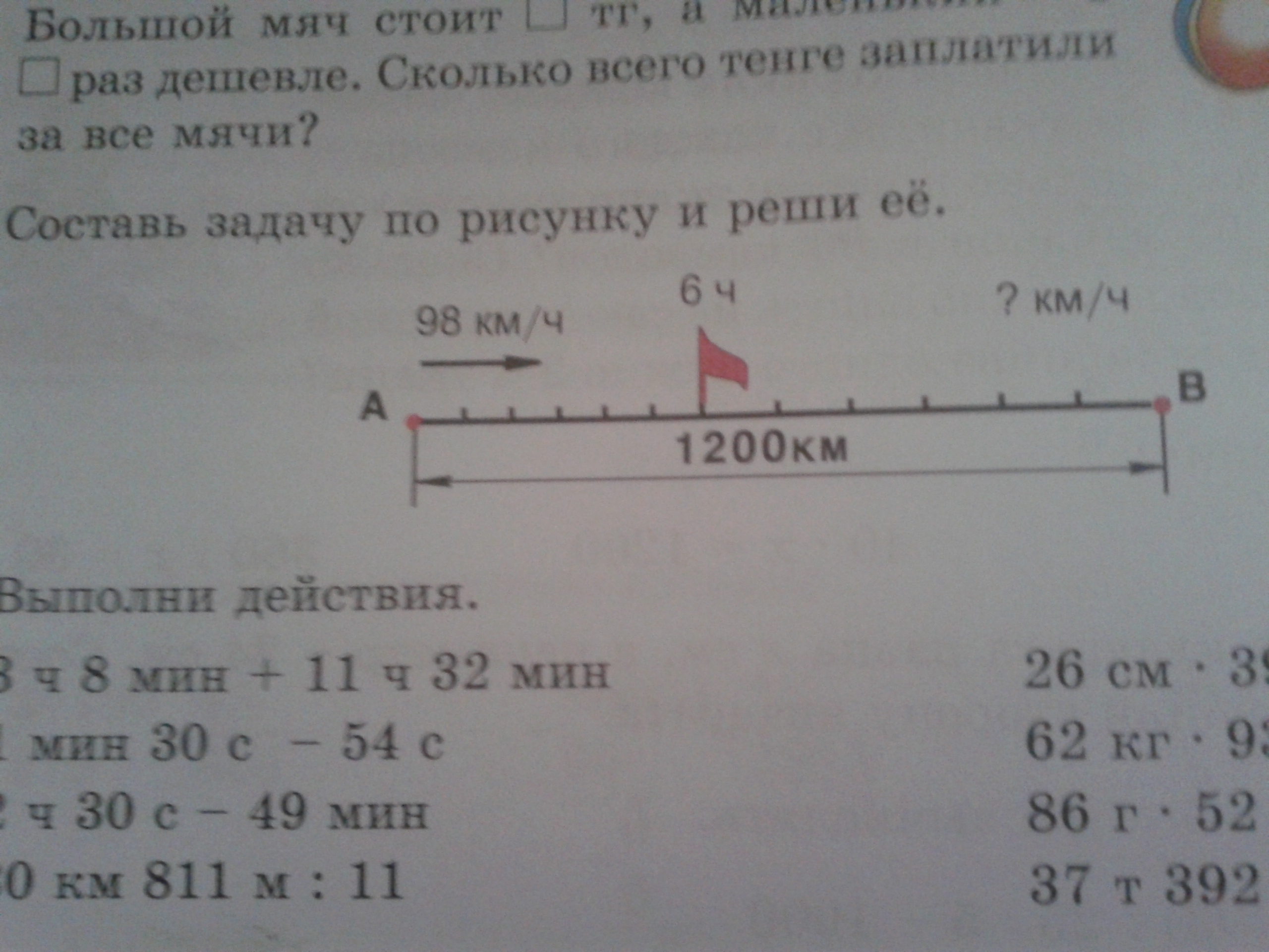 Из пункта А в пункт В, расстояние между которыми 1200 км, выехала легковая машина. 6 часов она ехала со скоростью 98 км/ч. С какой скоростью машина проехала оставшееся расстояние, если она была в пути ещё 6 часов [количество отрезков].