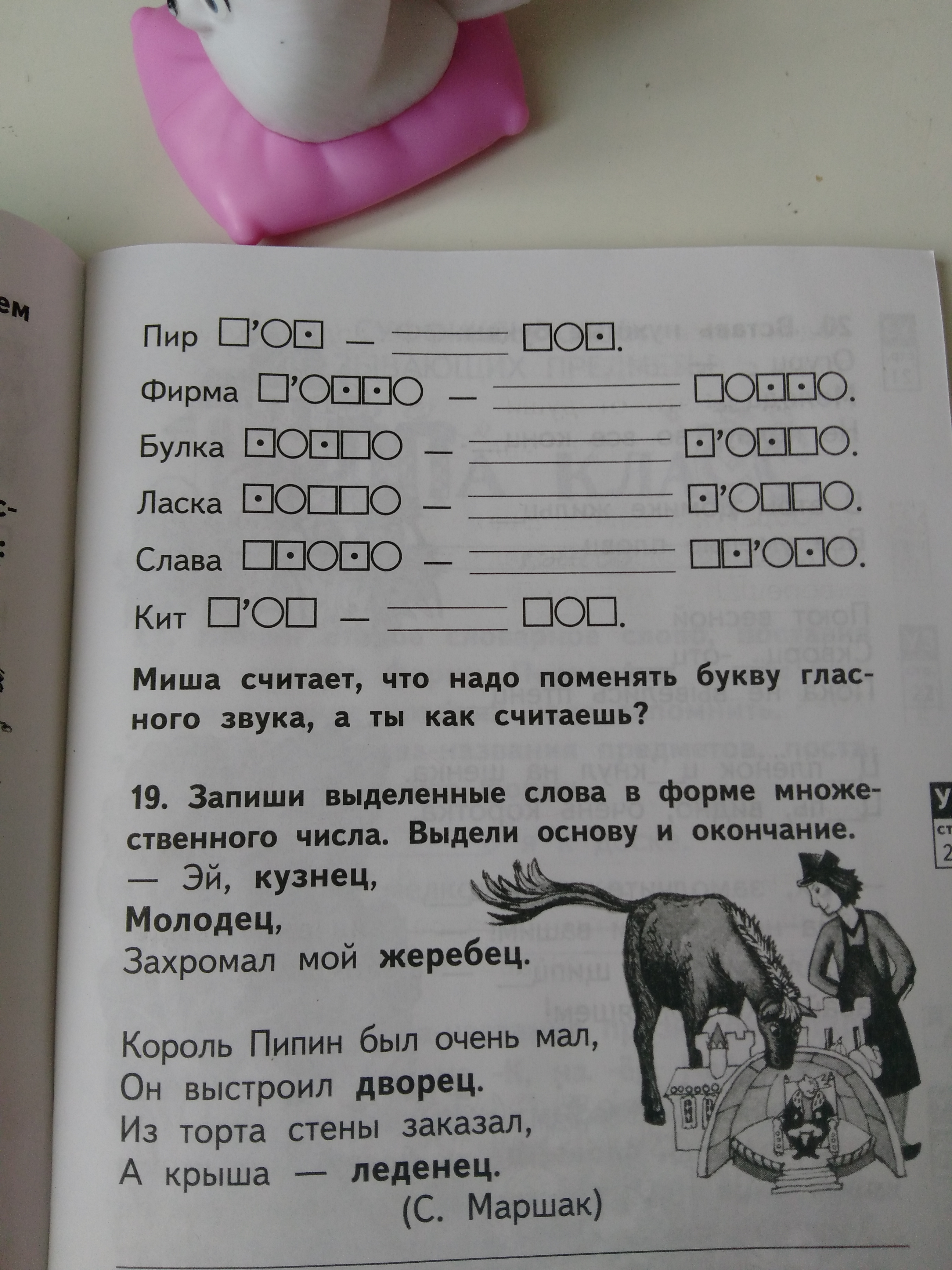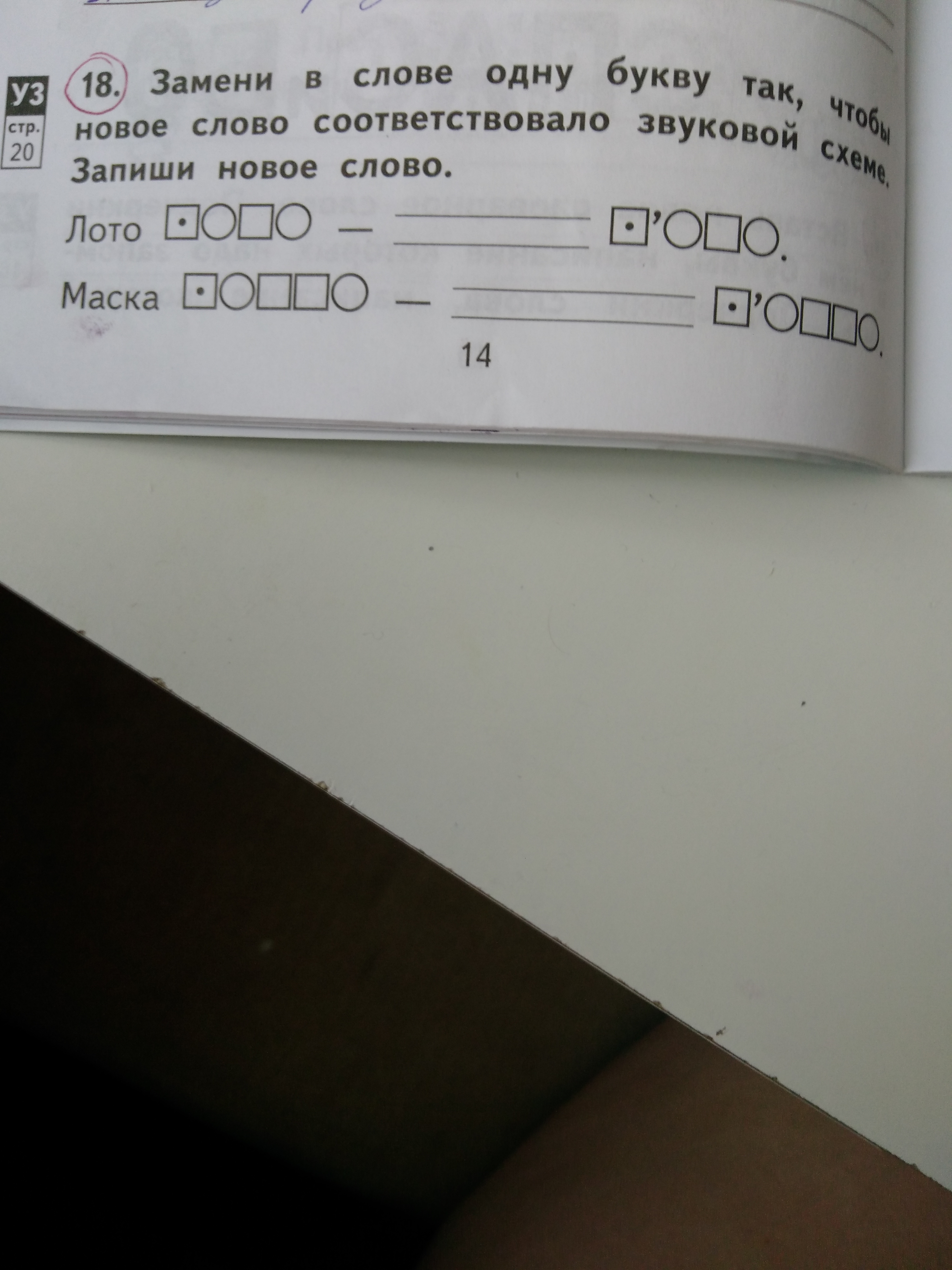 Замени в слове одну букву так, чтобы новое слово соответствовало звуковой схеме. Запиши новое слово.