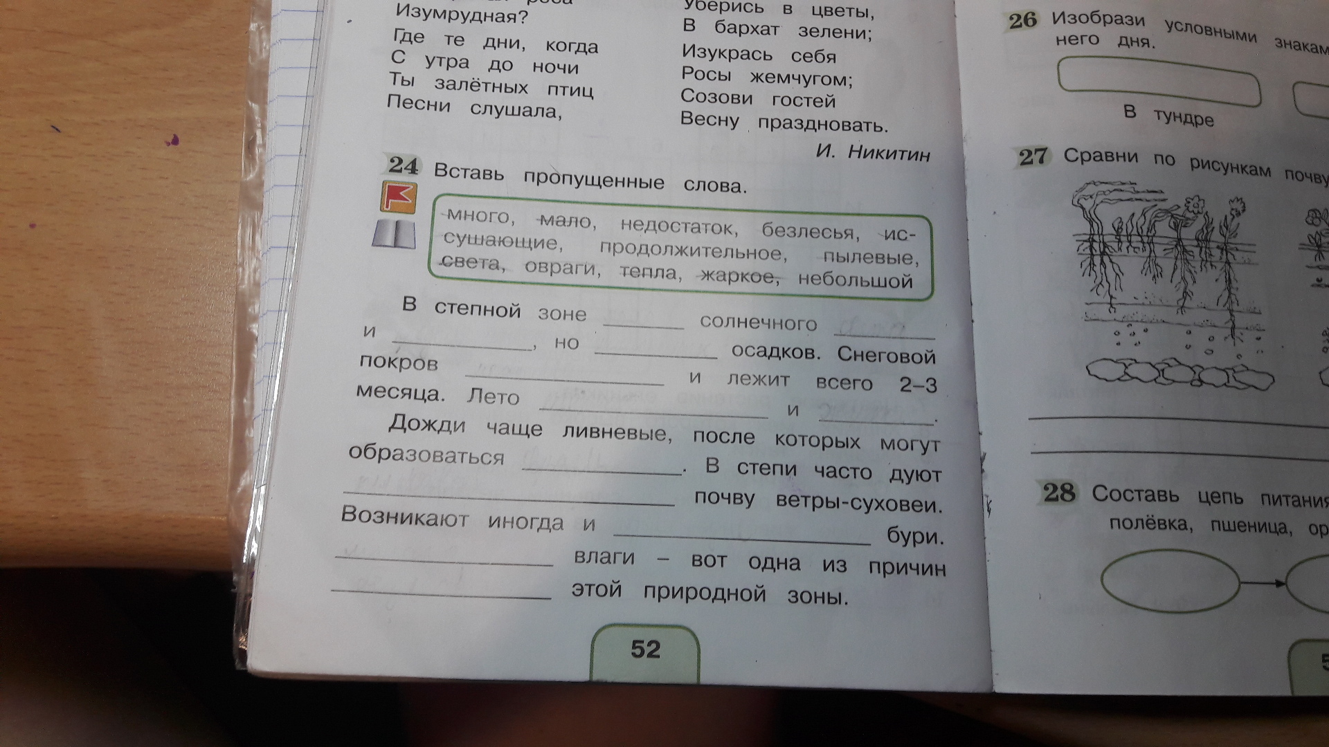 в степной зоне МНОГО солнечного света и ТЕПЛА. но МАЛО осадков. Снеговой покров не БОЛЬШОЙ и лежит всего 2-3 месяца. это все что смогла