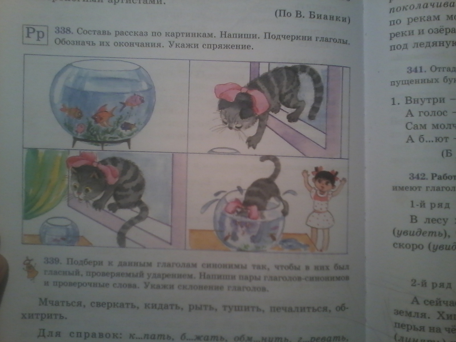 Составь рассказ по картинкам. Напиши. Подчеркни глаголы.Обозначь их окончания.Укажи спряжение.