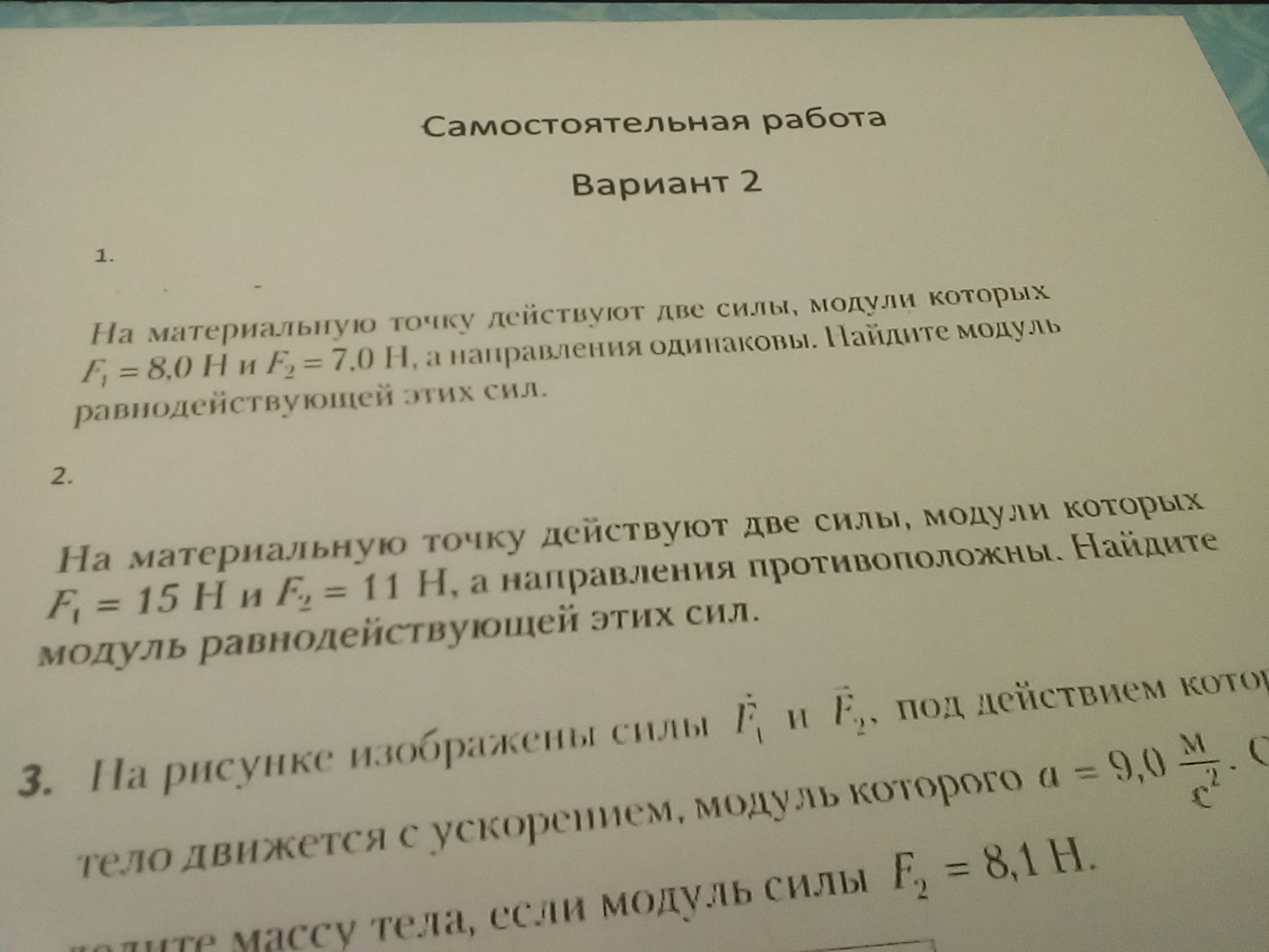 2) F=F1-F2=15-11=4 H (направлена в сторону F1)