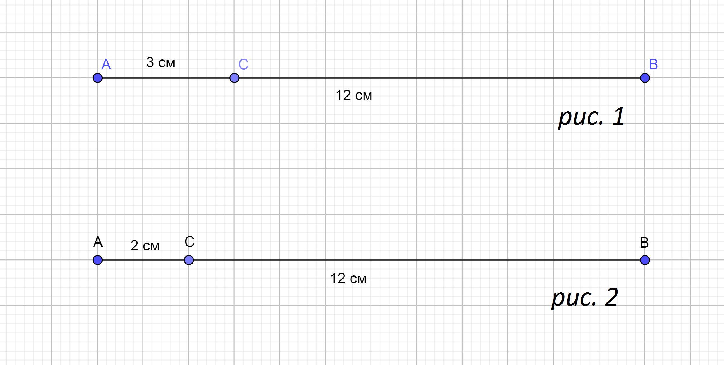постройте отрезок AB= 12 см.Отметьте на AB точку C так,чтобы а)AC = одной четвёртой AB б)AC= одна шестая AB