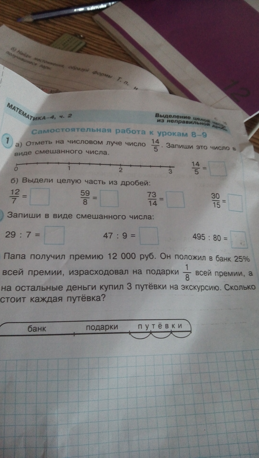 чтобы выделить целую часть нужно числитель разделить на знаменатель и числитель это вверху, а знаменатели внизу число .