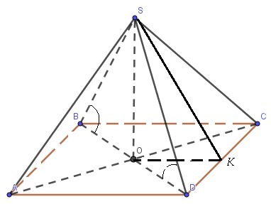 Из прямоугольного треугольника SOD: из определения косинуса найдем боковое ребро пирамиды: