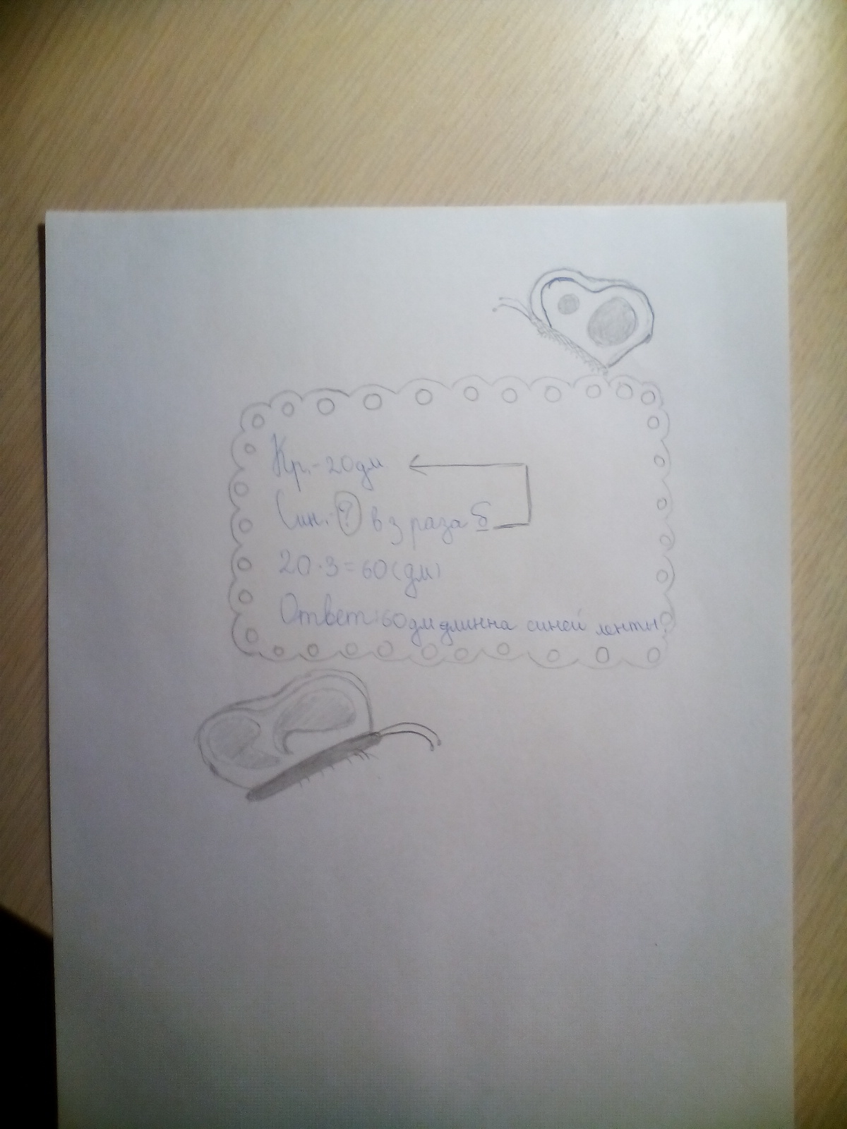 20*3=60дм - длина синей ленты