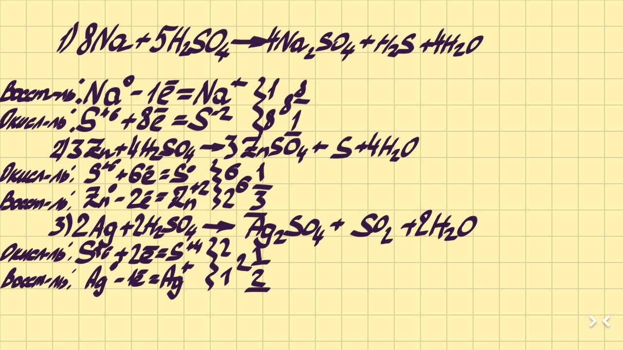 1. Na+H2SO4(к)->...+...+H2Sl^