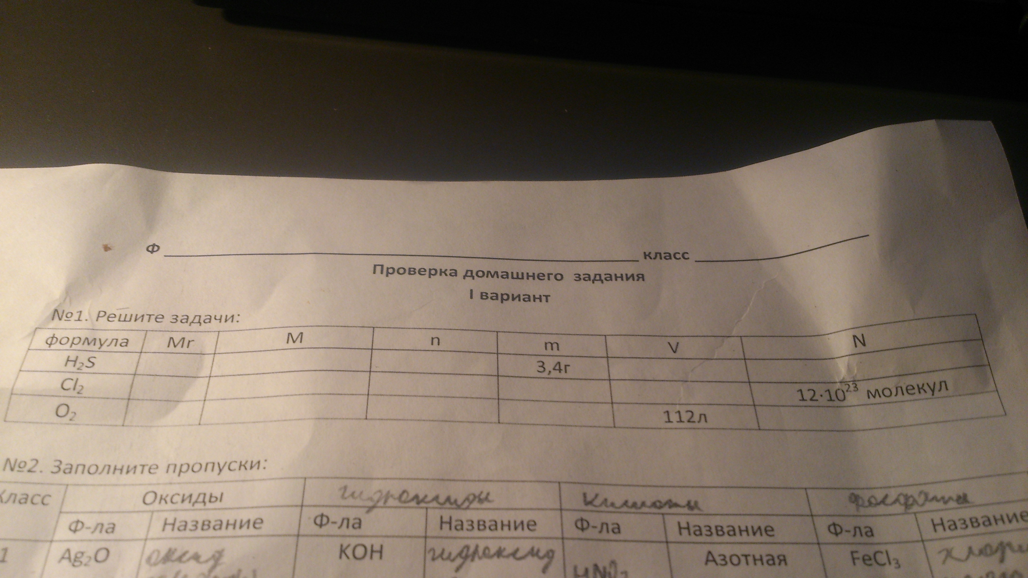 H2S: Mr = 34 а.е.м. М = 34 г/моль n = 0,1 моль V = 2,24 л N = 6,03*10^22 молекул