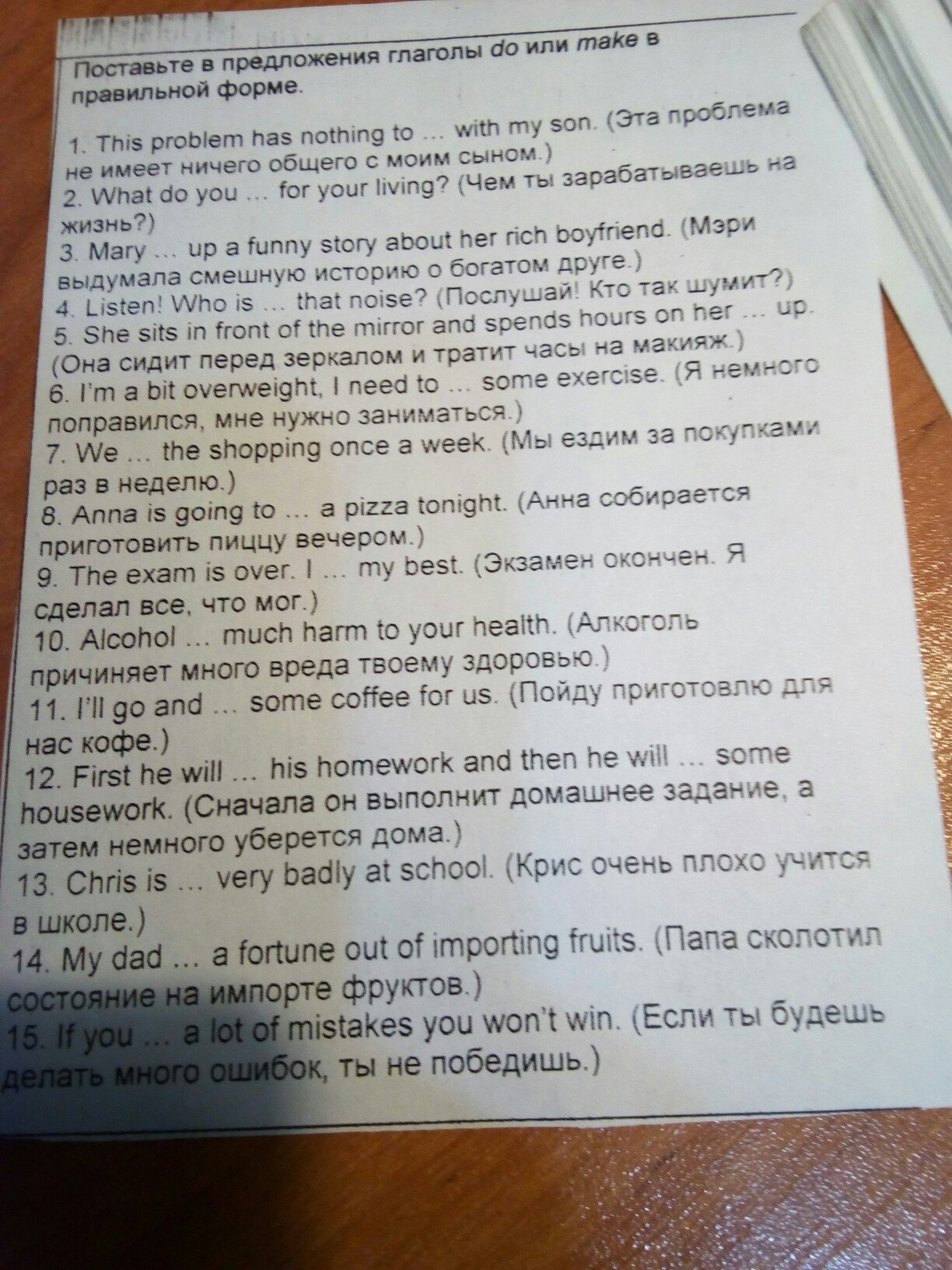 1 do 2 do 3 made 4 making 5 make 6 do 7 do 8 make 9 did 10 does 11 make 12 do do 13 doing 14 made 15 make