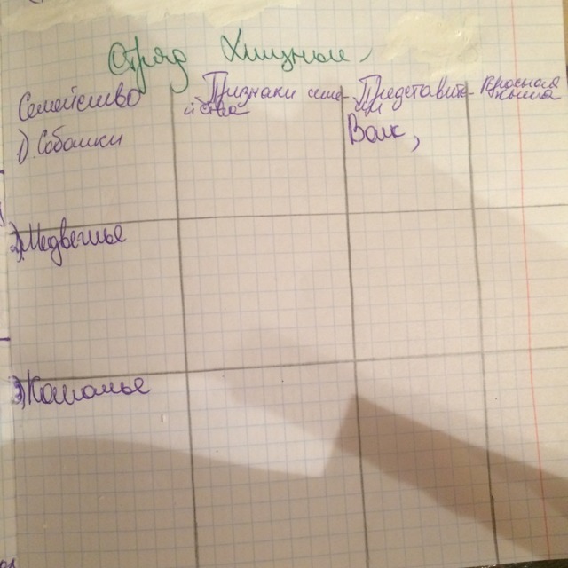 1 таблица называется семейство;2 таблица признаки семейства;3 таблица предста