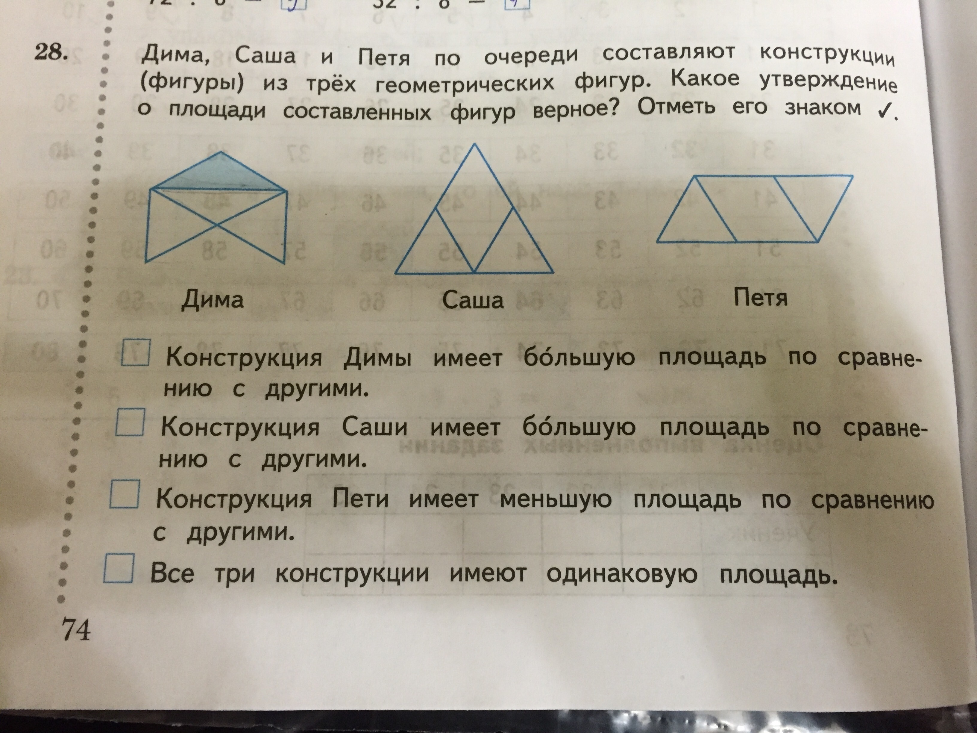 Все три конструкции имеют одинаковую площадь