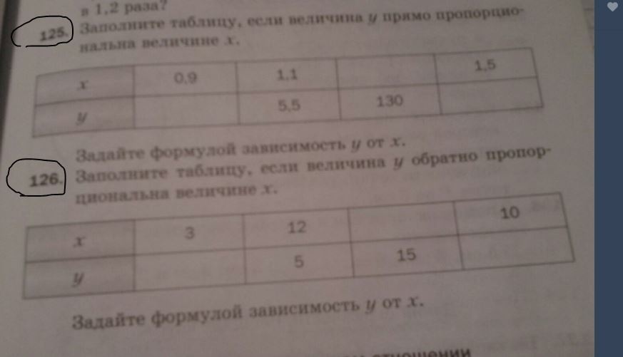 Прямая пропорциональность (формула) y=kx, где k- коэффициент прямой пропорциональности. k – не равное нулю число. Из второго столбика таблицы понятно, что k=5 (5,5/1,1=5) Значит, первый y= 0,9*5=4,5