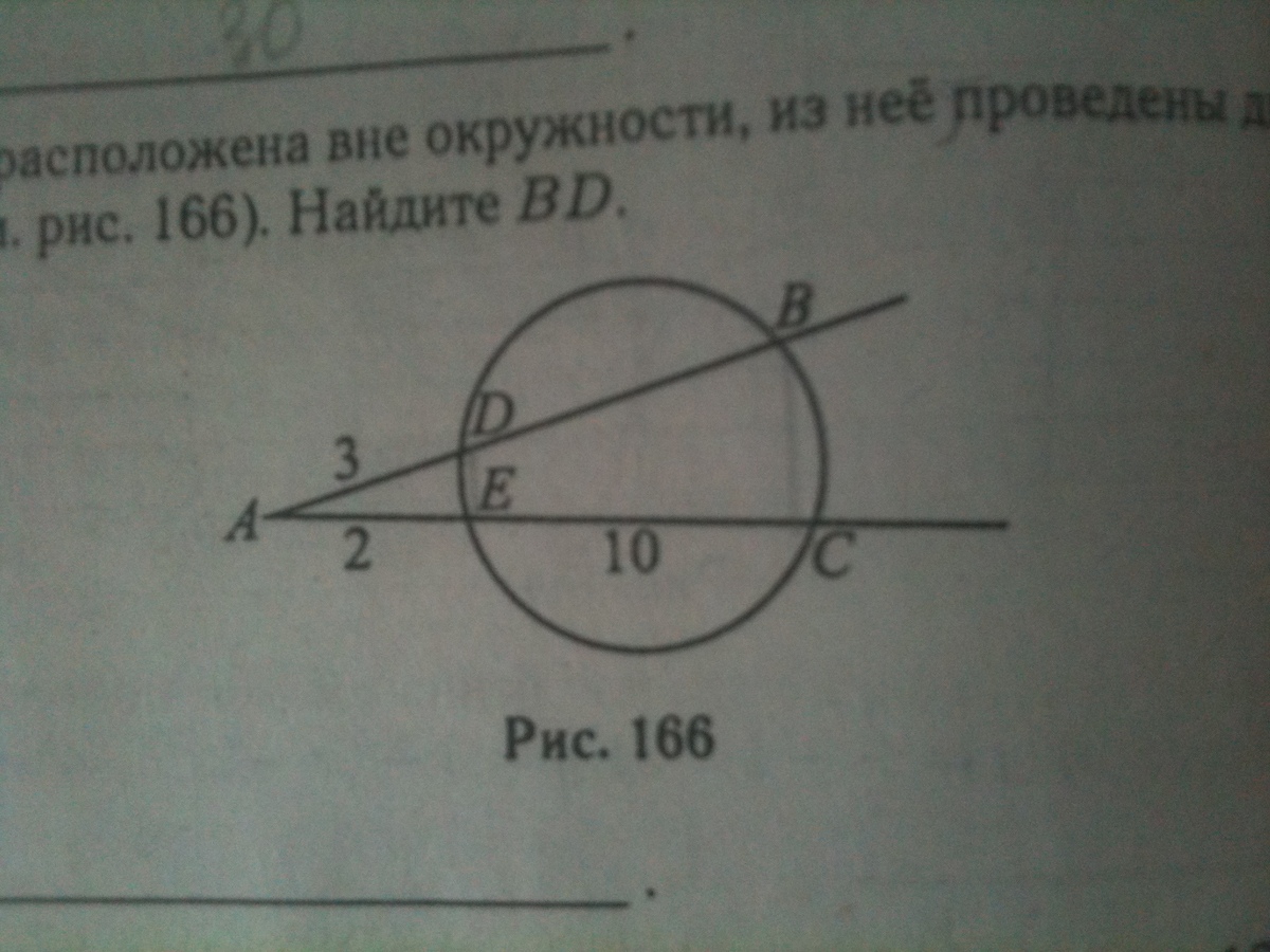 Точка A расположена вне окружности, из неё проведены две секущих AB и AC(см. рис.) Найдите BD.