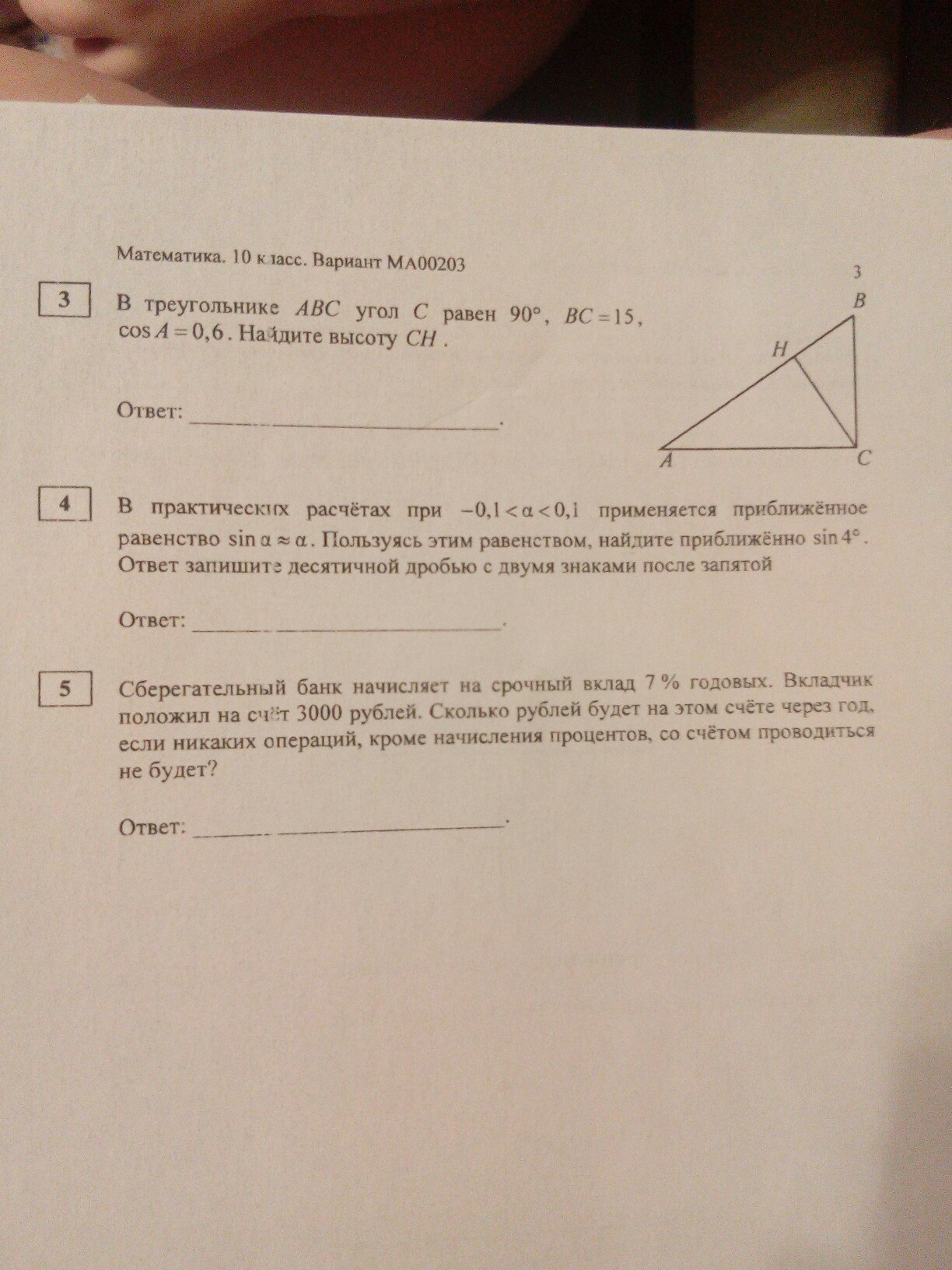 3) Так как < В = 90°- (<A), то sin B = cos A = 0,6.