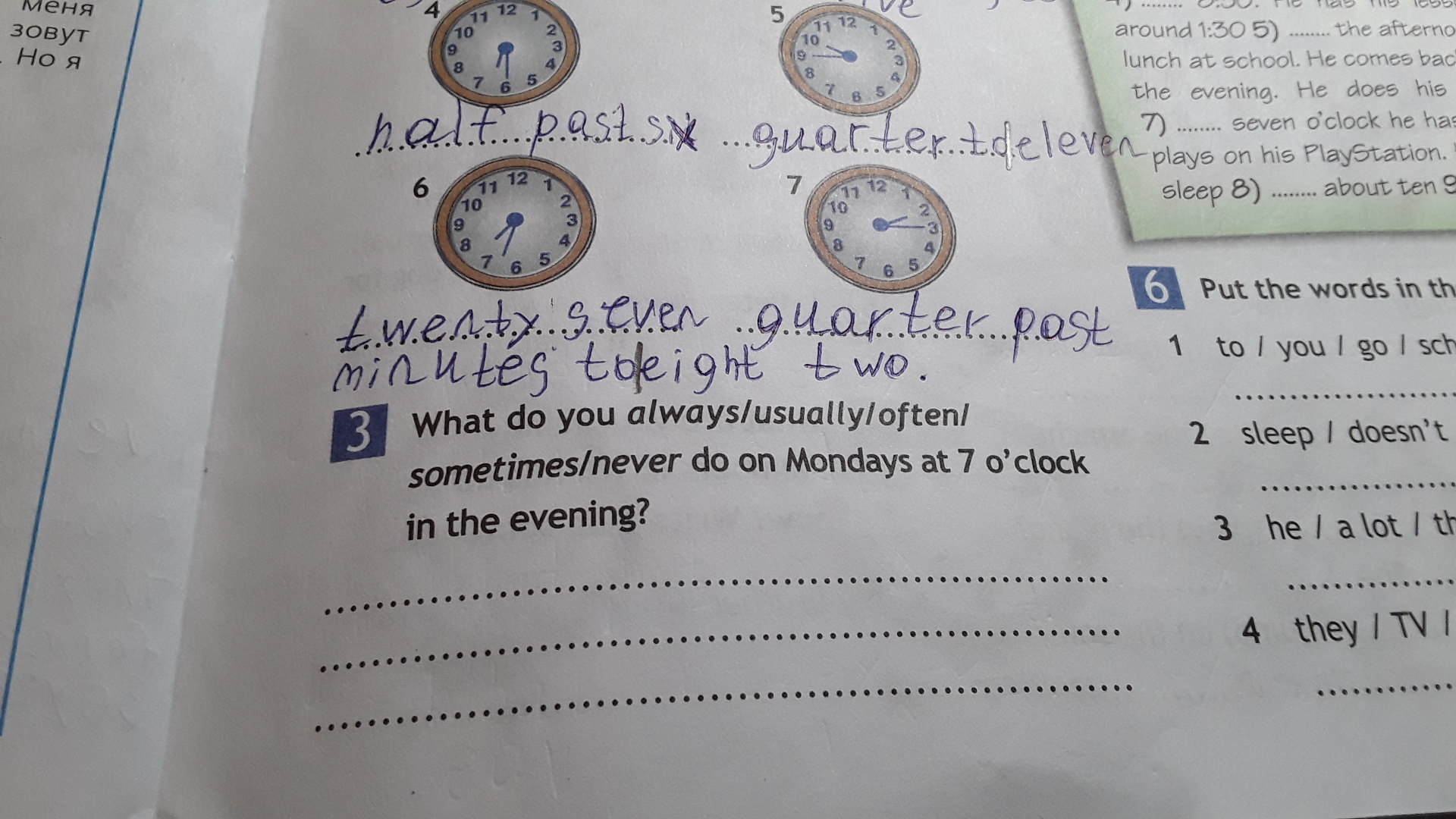 I get up at 7 o'clock, have breakfast, clear teeth and go to school