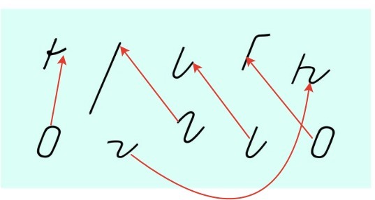 В приложении показано, какие части соединить, чтобы получились нужные буквы. Авторы не совсем точно нарисовали недостающую часть к букве К.