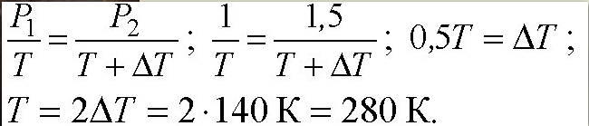 При какой температуре находился газ в закрытом сосуде, если при его нагревании на T = 300 К давление возросло в 1,5 раза?