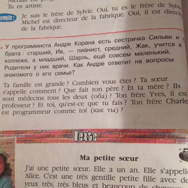 Ma soeur s'appele Silvie. Mon père et ma mère travail sont médecins. Mon frère Yves n'est pas professeur, il est pianiste. Je suis programmeur. Mais mon frère Charle ne travail pas parce qu'il est très petit.