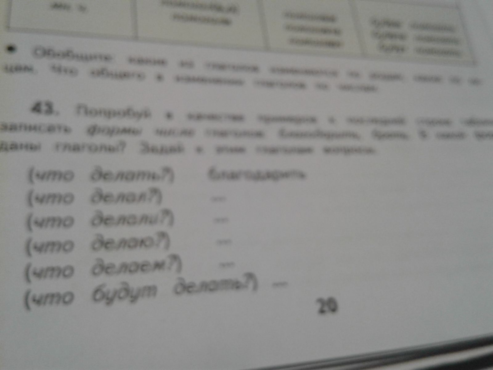 попробуй в качестве примеров к последней строке записать формы числа глаголов благодарить брать в какой форме даны глаголы ? Задай к глаголам вопрос