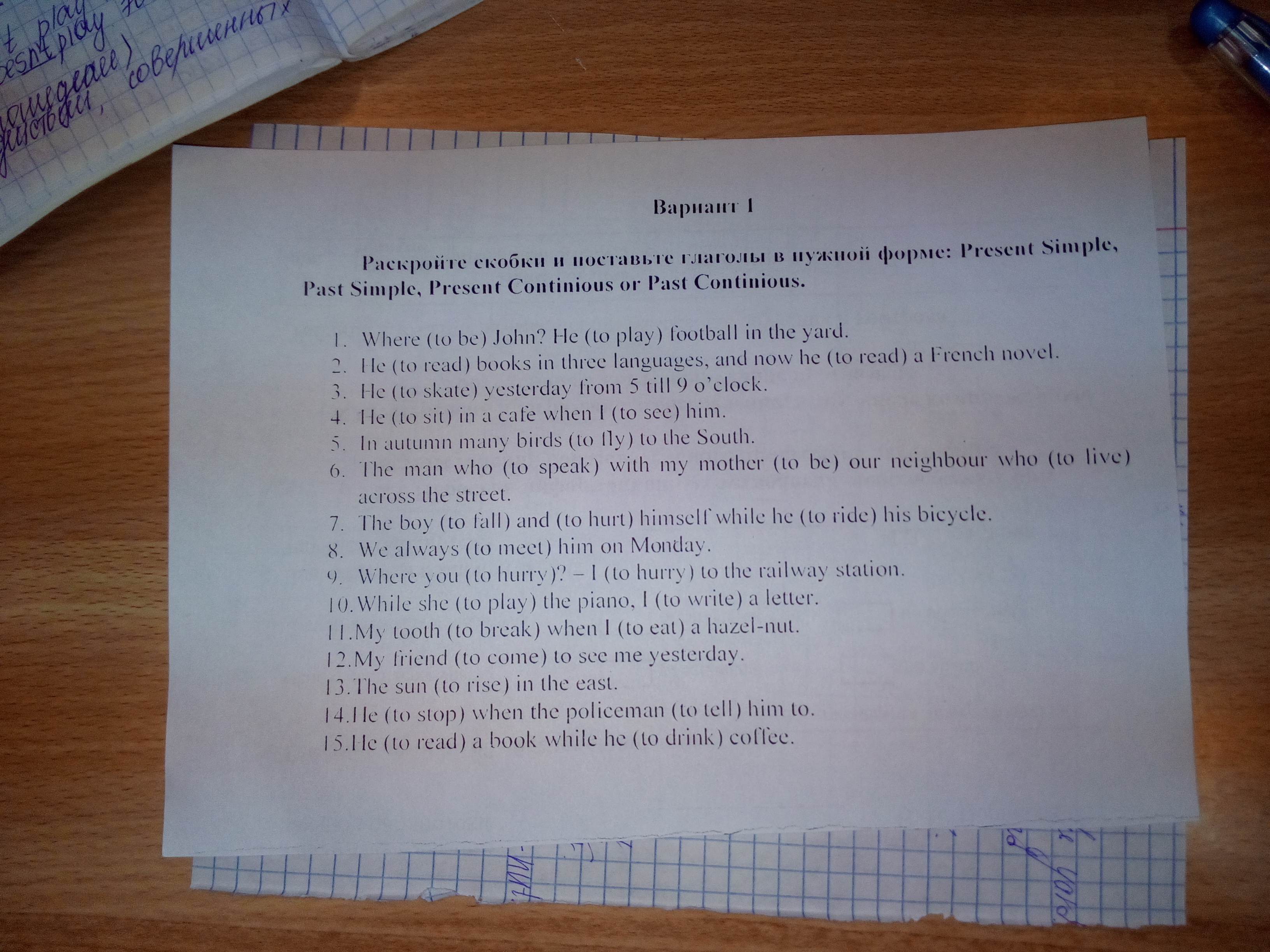 15.was reading;was drinking