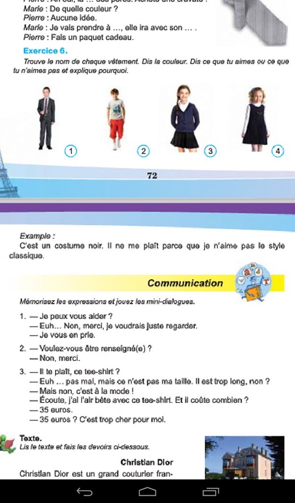 4. Cette robe noire et un chemisier blanc. Ce style ne me plaît pas. Je n'aime pas le style officiel.