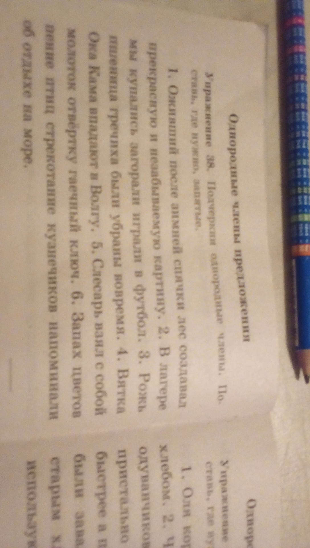6.Запах цветов,пение птиц,стрекотание кузнечиков напоминали об отдыхе на море.(Запах,пение, стрекотание-однородные подлежащие______)
