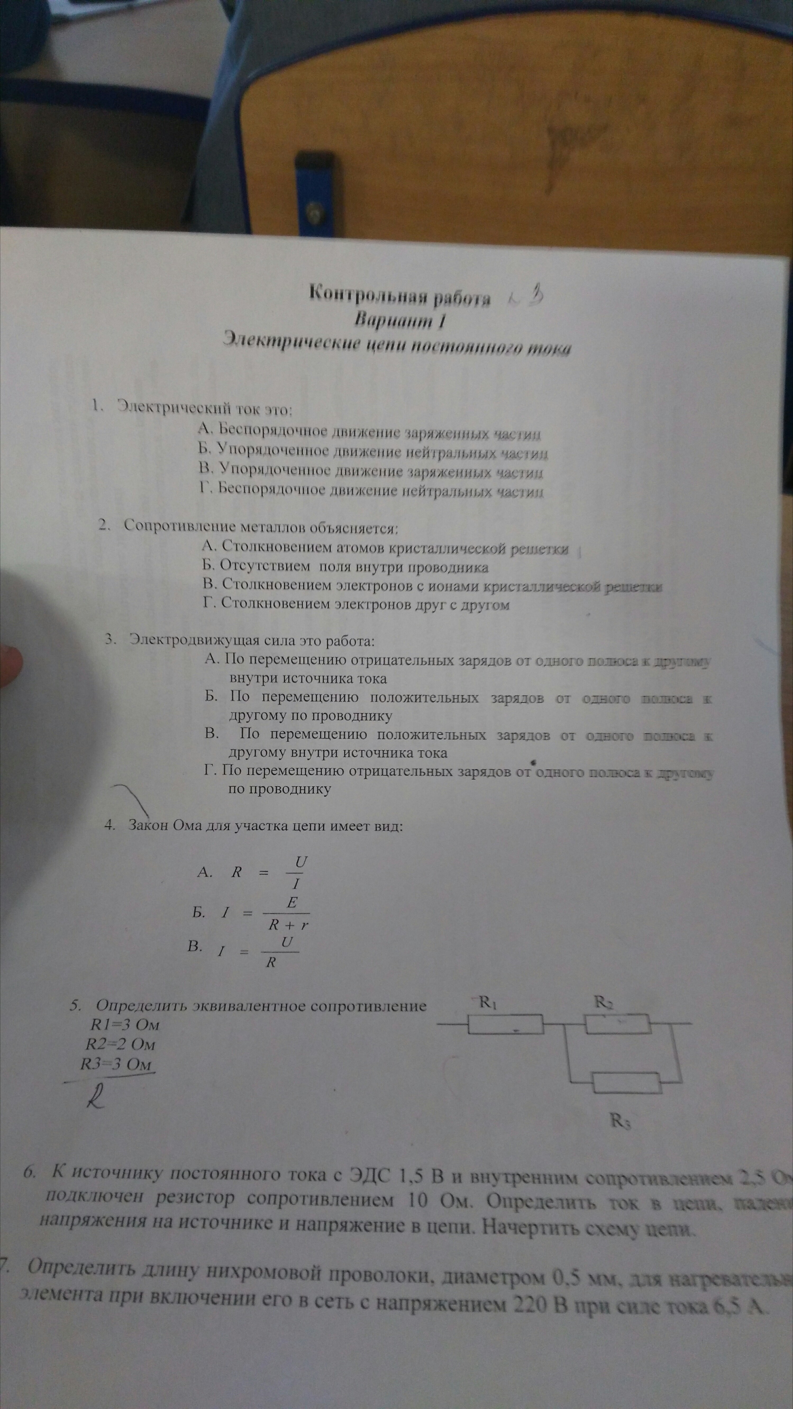 6) I=E/(R+r)=1,5/(10+2,5)=0,12 A