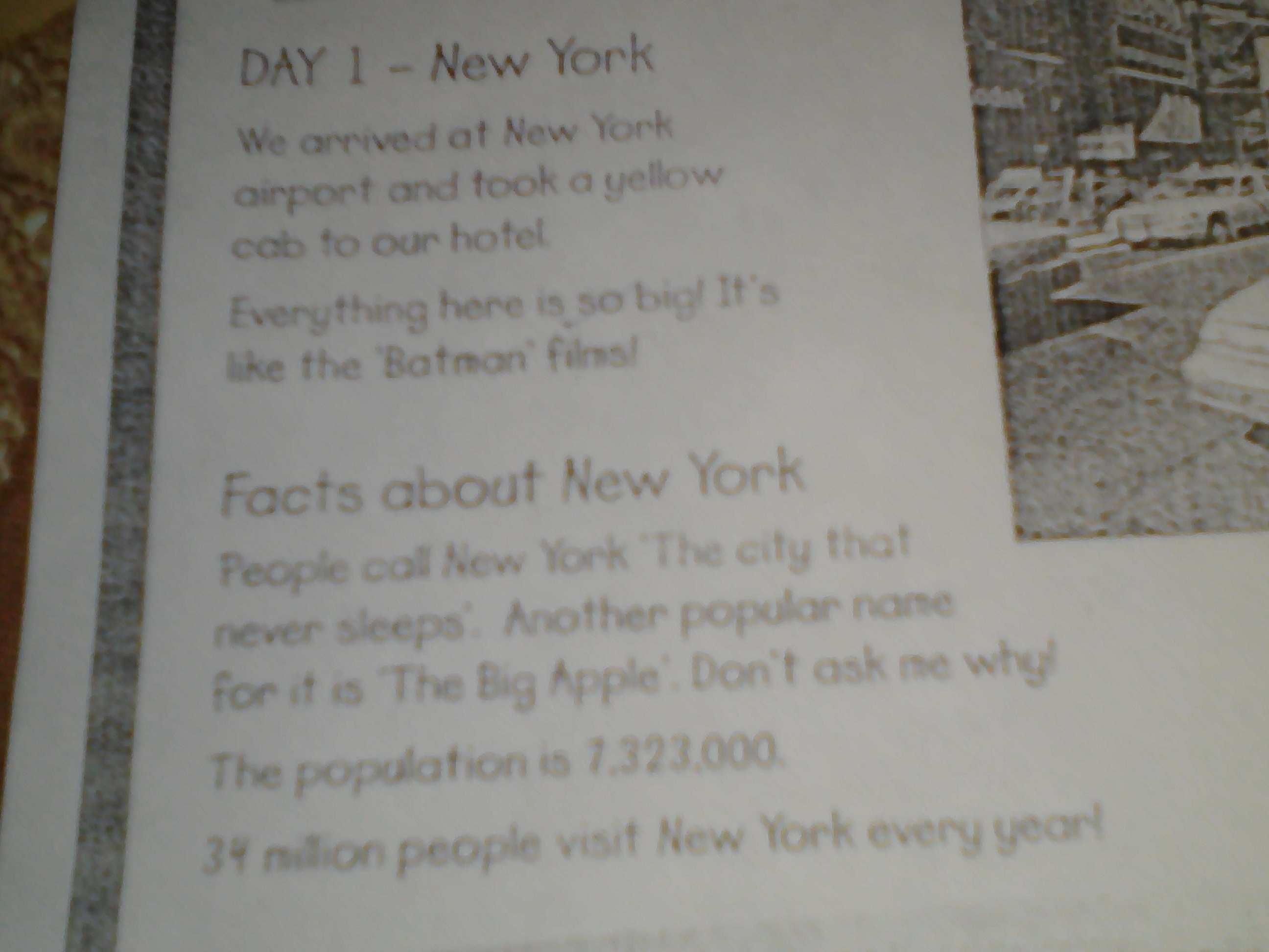 День 1 Нью-Йорк Мы прибыли в аэропорт Нью-Йорк и взял желтый такси к нашей гостинице все здесь настолько большой, будто Лт Бэтмен фильмов факты о Нью-Йорке Люди Col Нью-Йорк город, который, ибо это Big Apple не спрашивайте меня, почему население 1323000 34 миллиона человек посещают Нью-Йорк ежегодно