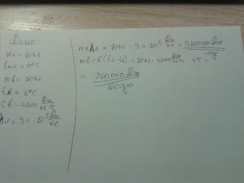 В каком случае будет затрачено большее количество теплоты при плавлении 10 кг льда по температуре плавление или при нагревании 10 кг воды на 5°С