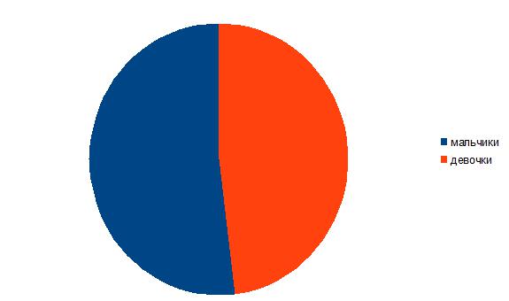 постройте круговую диограмму , изображающию процентный состав мальчиков 13 и девочек 12 нашего класса