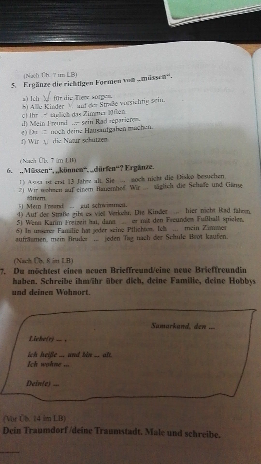 6. Ich muss mein Zimmer aufräumen, mein Bruder muss jeden Tag nach der Schule Brot kaufen.