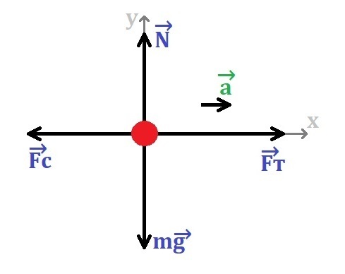 Троллейбус масса которого 12 т, за 5 с от начала движения проходит по горизонтальному пути расстояние 10 м. Определить силу тяги, развиваемую двигателем, если коэффициент сопротивления движению 0,02