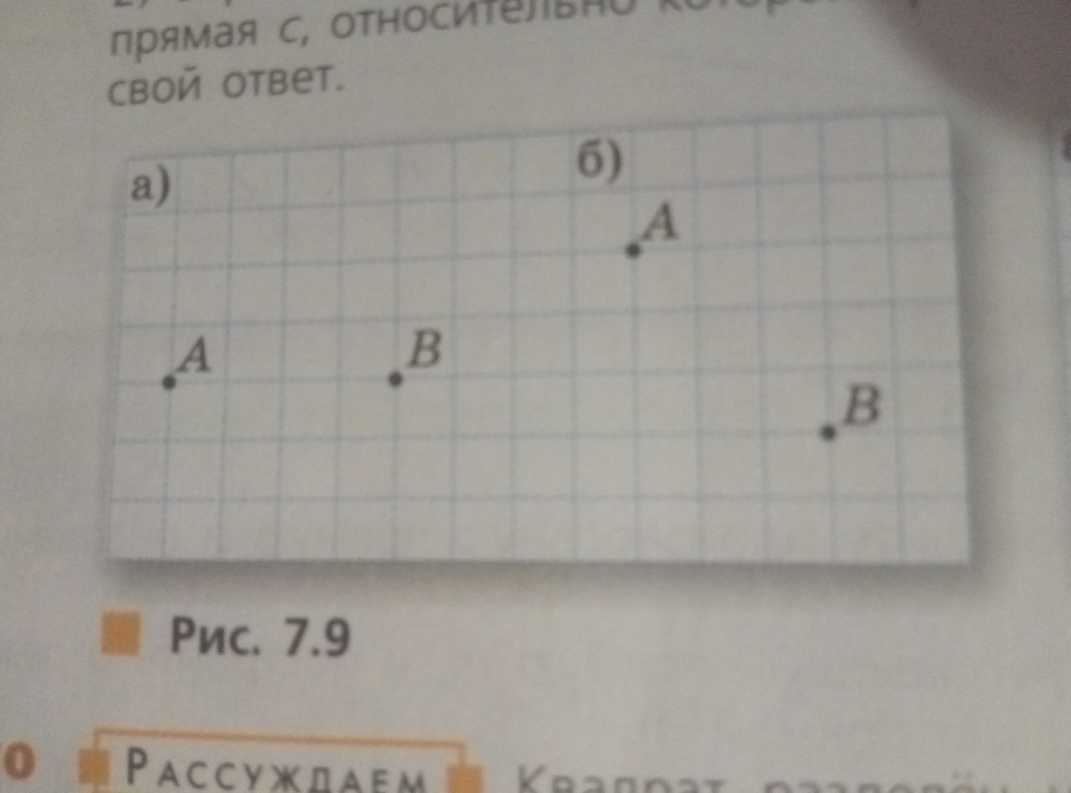 Скопируйте рисунок 7.9 и постройте прямую L, относительно которой точки A и B симметричны.