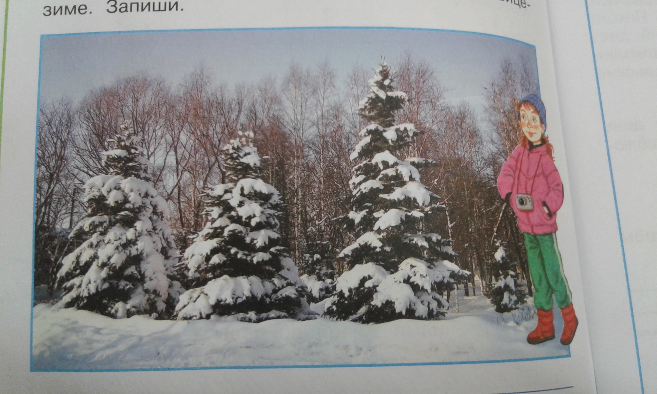 Морозы сковали землю. Замерзли реки и озера. Везде лежит белый пушистый снег. Дети рады зиме. По свежему снегу приятно бежать на лыжах. Серёжа и Женя играют в снежки. Лиза и Зоя лепят снежную бабу.