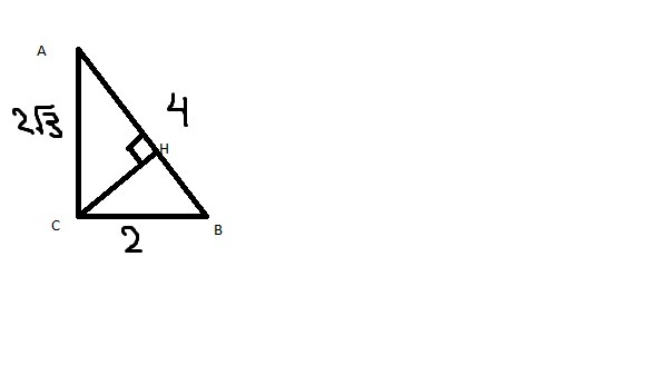 Катеты Прямоугольного треугольника равны 2√3 см и 2 см Найдите их проекции на гипотенузе,если гипотенуза равна 4 см