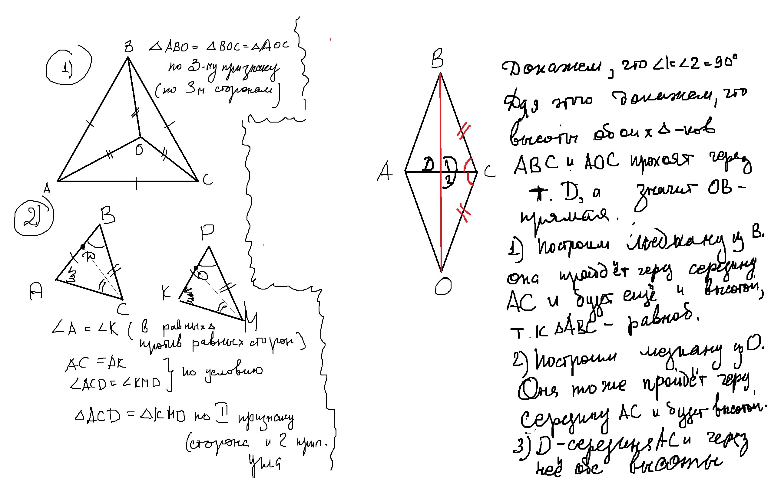 Внутри равностронего треугольника АБС отмечена точка О. АО=ВО=СО.Докажите,что треугольник АОС=треугол. ВОС= треугол. ВОА.