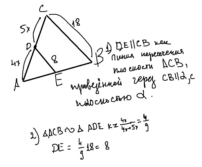 )? 2) Вычеслите длину отрезка DE, если AD : CD= 4:5 и CB = 18 см