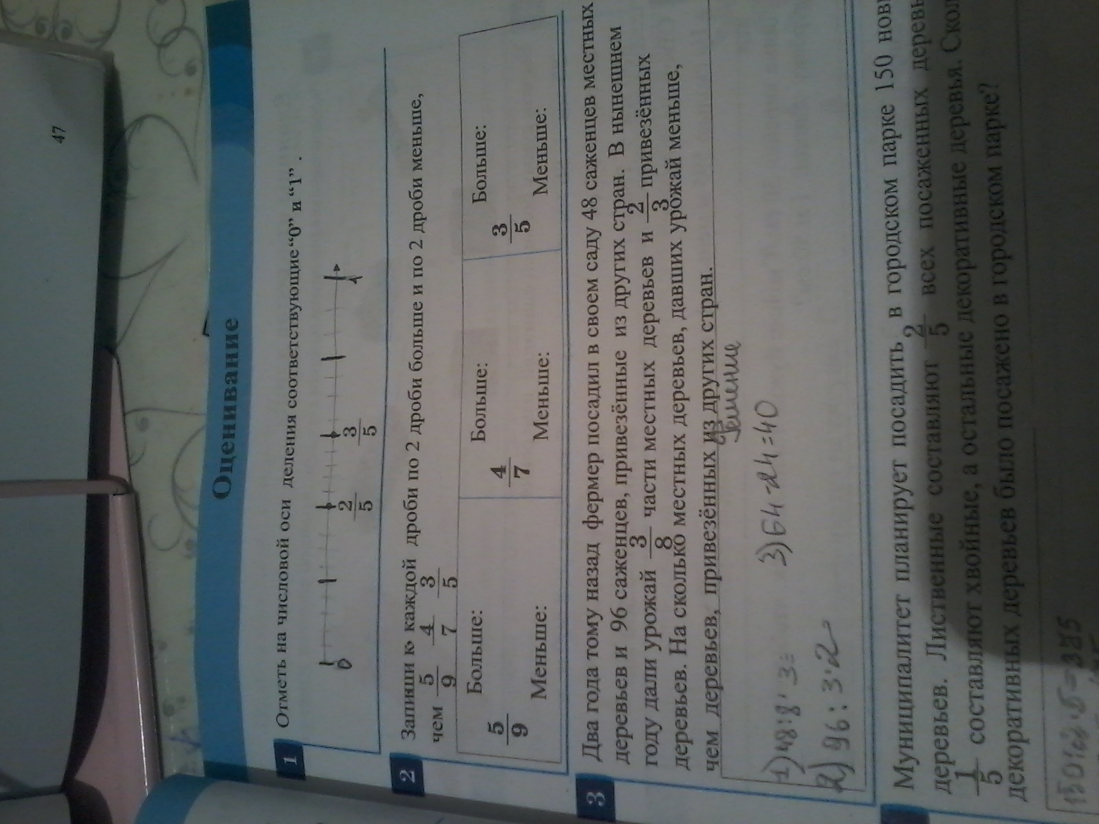3)Больше4/5, 5/5 Меньше2/5, 1/5