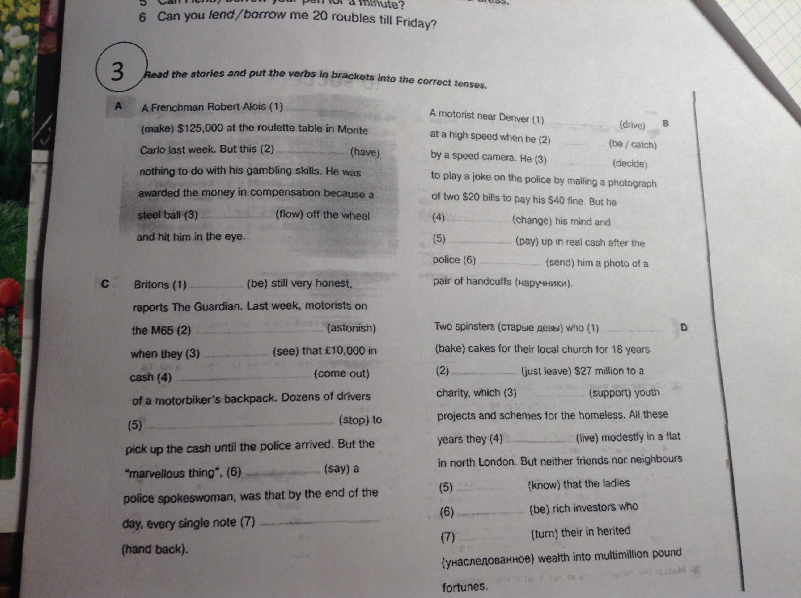 1) are 2) was astonished 3) saw 4) was coming 5) stopped 6) said 7) was handed back