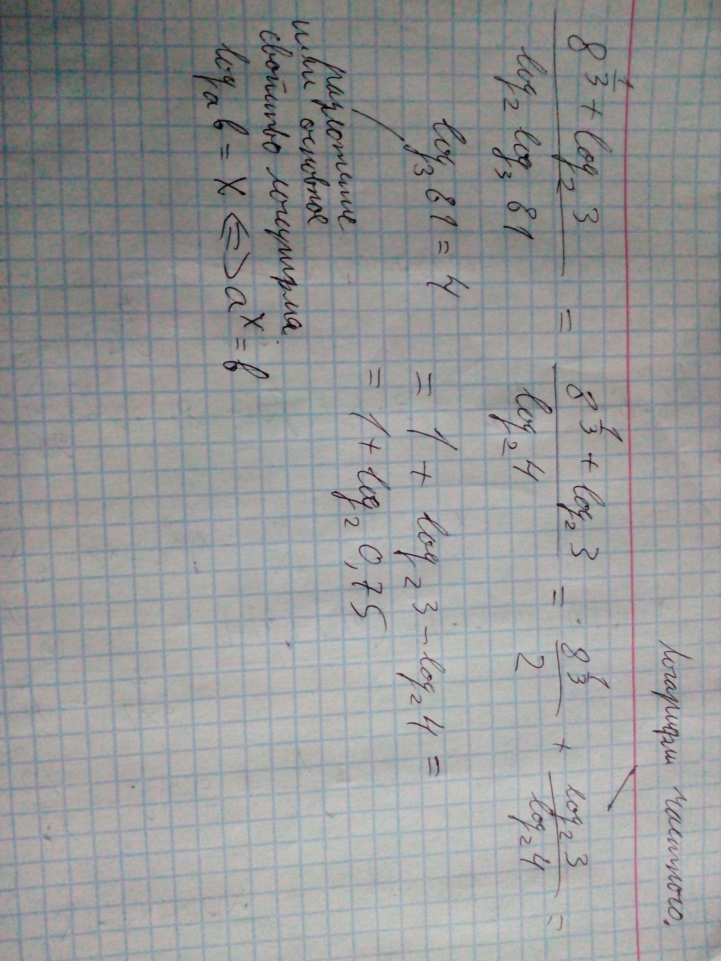 Но log по основанию 2 числа 3 это все степень числа 8,разве это можно "оторвать"