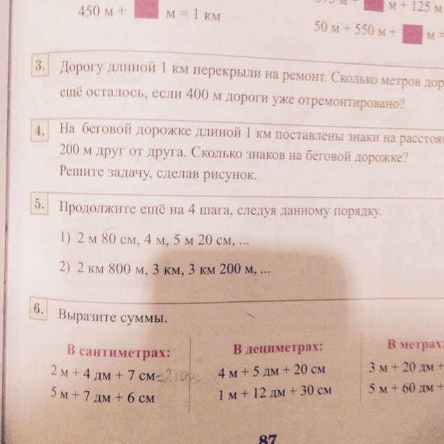 2)4 км 400 м, 4 км 600м, 5 км 800м, 7км