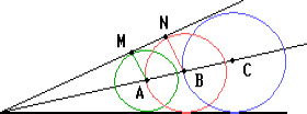 Пусть R — радиус средней окружности. Проведём радиусы малой и средней окружностей в точки касания с одной из сторон данного угла. Из подобия полученных прямоугольных треугольников следует, что . Поэтому