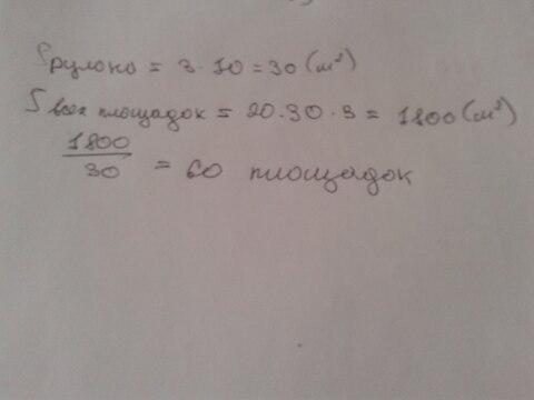 Рулон специального покрытия для детских площадок имеет ширину 3 метра и длину 10 метров. Планируется построить три одинаковых прямоугольных площадки размером 20 на 30 метров. Сколько рулонов для этого потребуется?