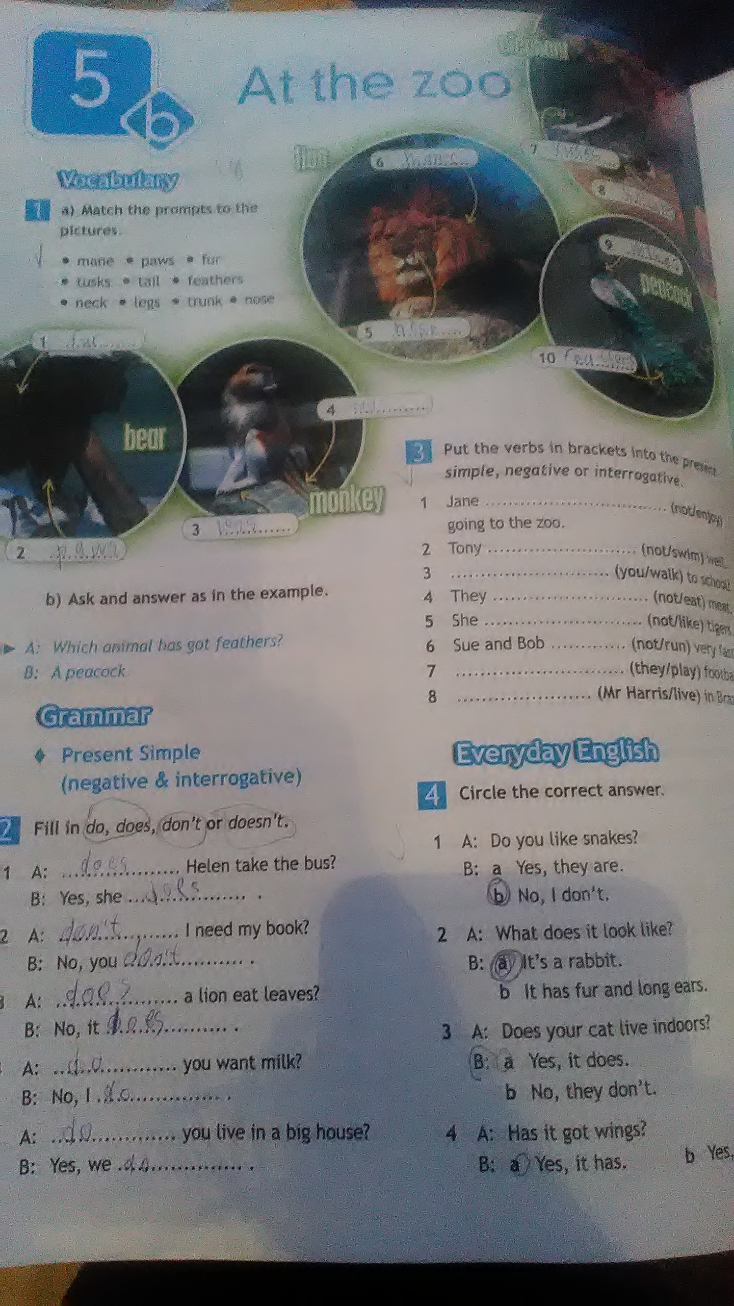 а, во втором ошибка в 3 предложении, ответ: No.it doesn't...и в 4 предложении ошибка в ответе No. I don't.)