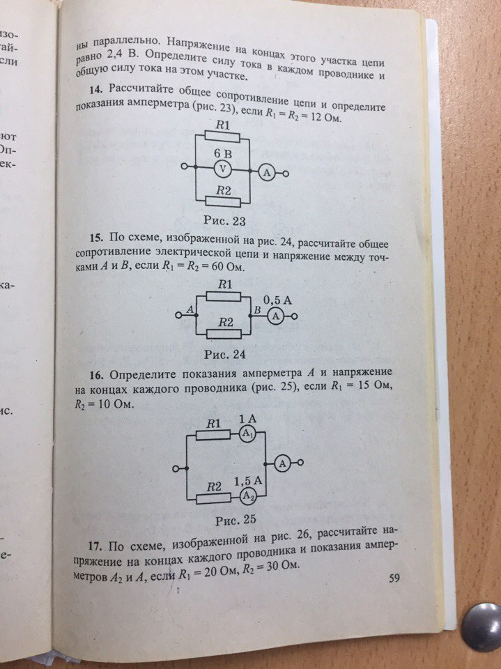 14)Общее сопротивление 12*12/24=6Ом (можно запомнить что при паралельном соединении 2-х одинаковых проводников, общее сопротивление в 2 раза меньше их сопротивления)