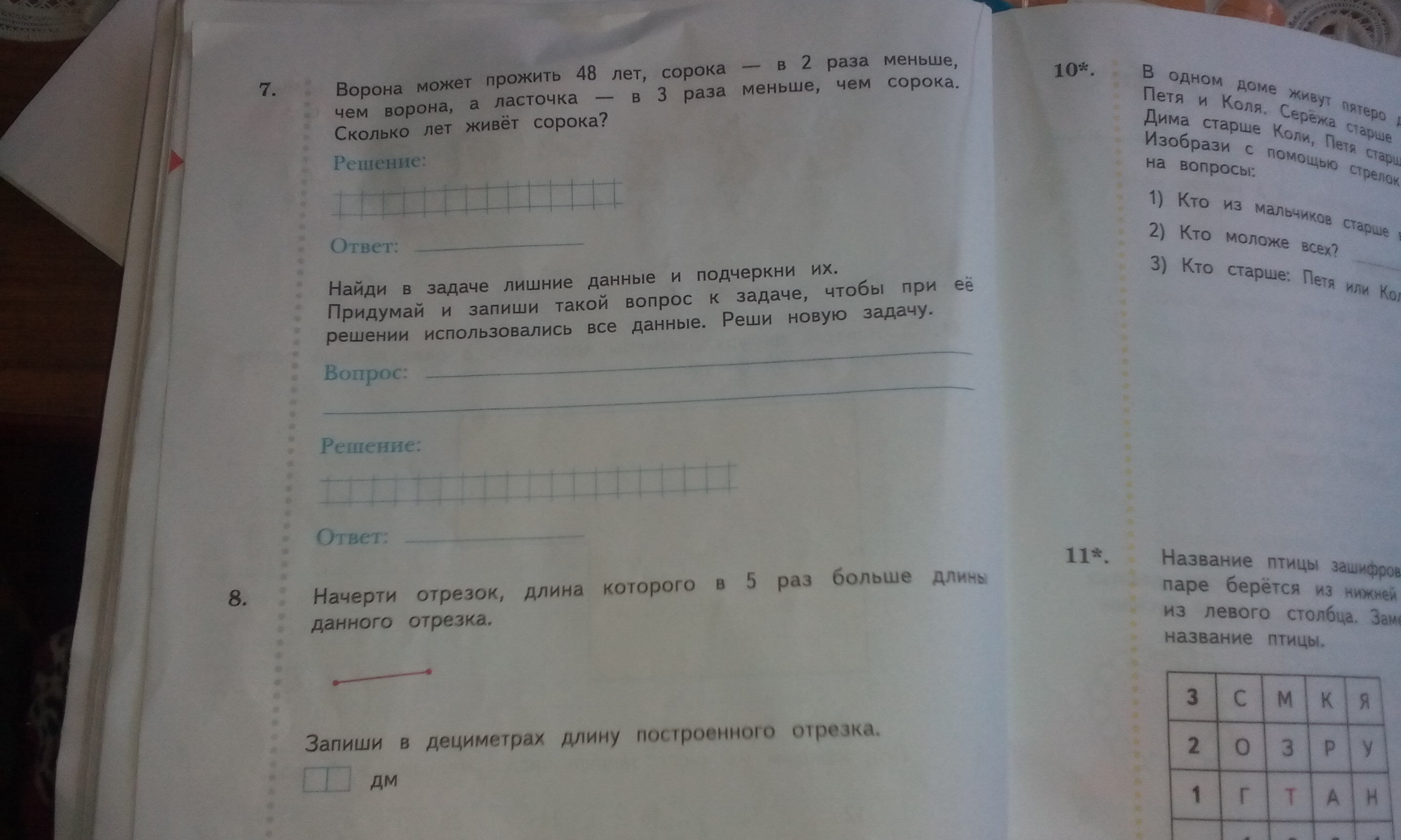 а ласточка в 3 раза меньше, чем сорока (это подчеркнуть)
