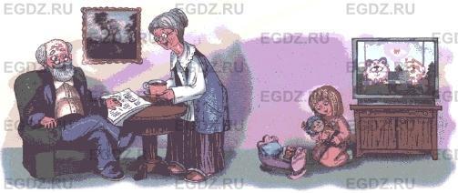 девочка ложит спать куклу.бабушка положила чашку чая на стол.дедушка решает ложные примеры.
