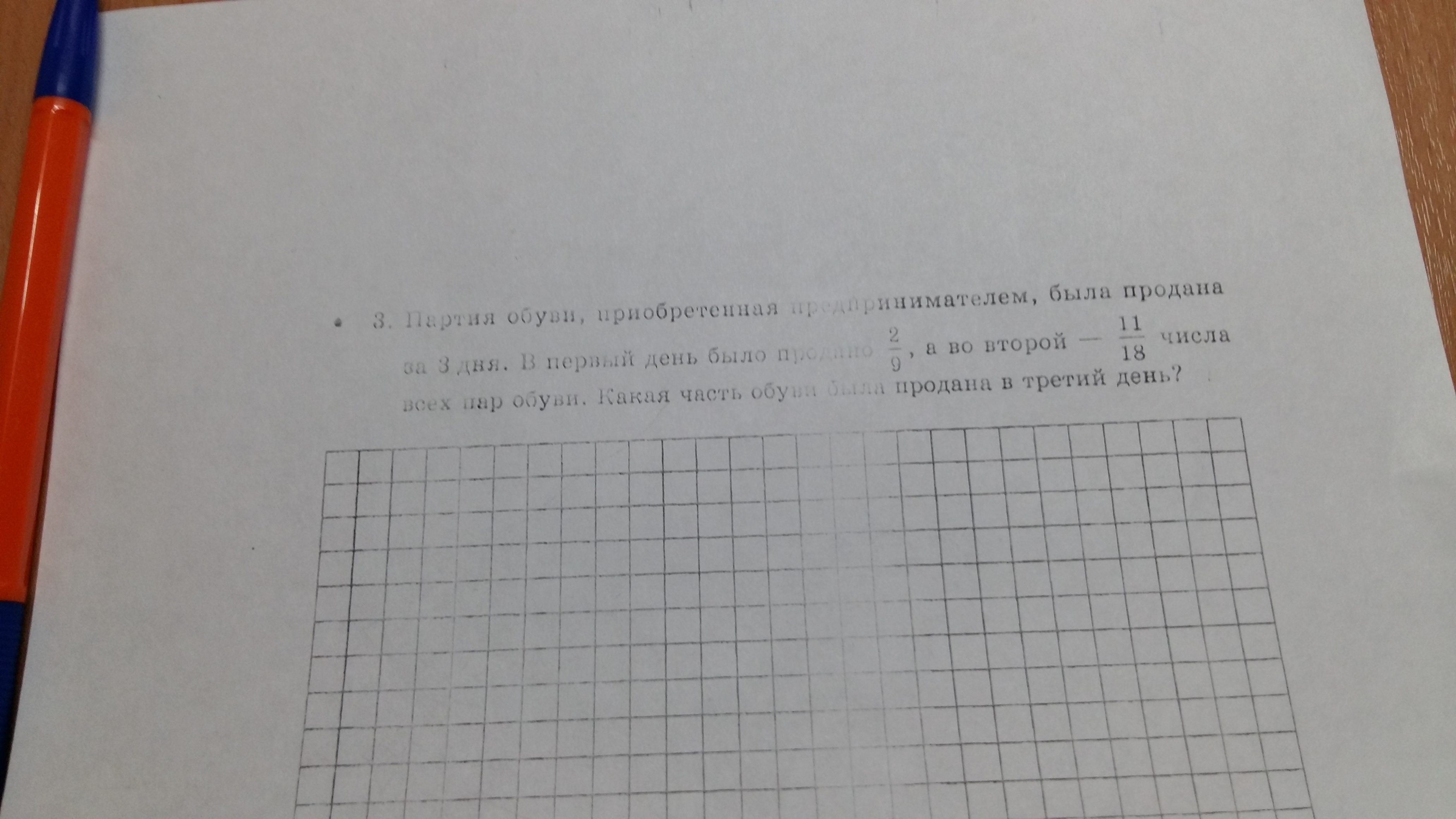 Умножь первую дробь на два,получится 4/18,потом сложи дроби и получится 15/18,отними от 18/18 15/18,получишь 3/18,сократи на 3,будет 1/6