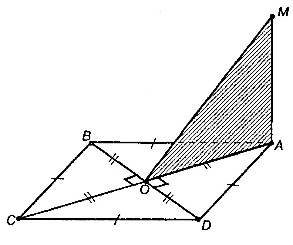 б) АО – проекция наклонной МО и перпендикулярна ВD, следовательно, по т. о трех перпендикулярах