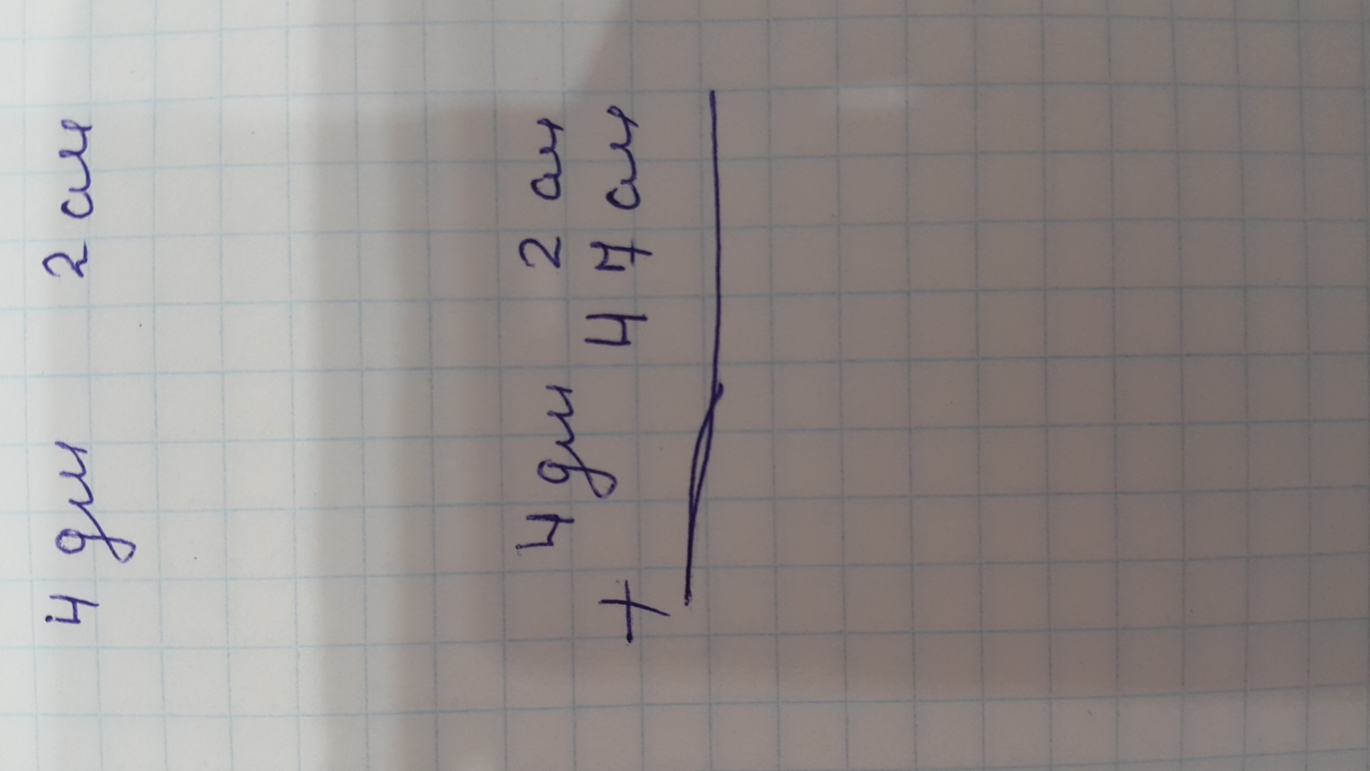 Подскажите пожалуйста как правильно написать ответ по клеткам на пример в столбик, чтобы десятки были под десятками а ед. под единицами: 4дм2см+47см.