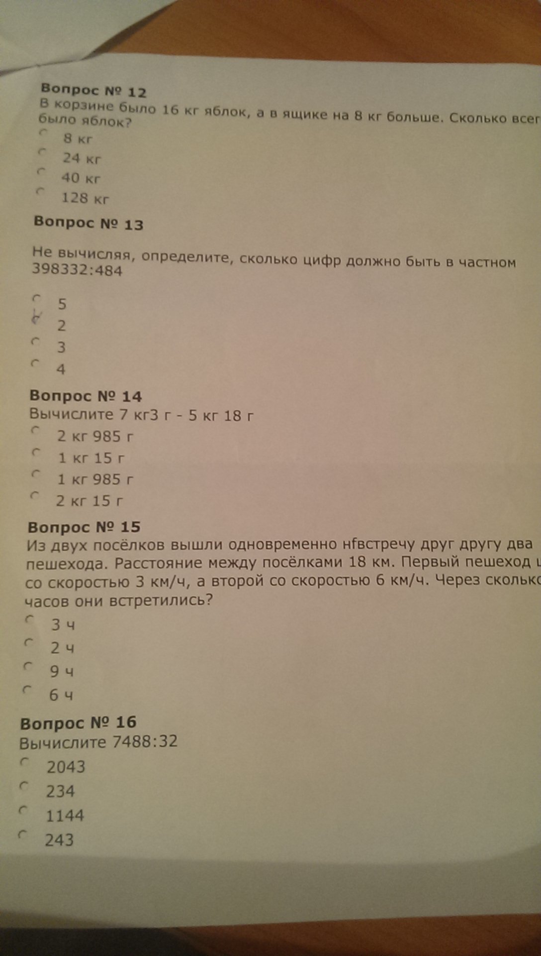 12 =40, 13= 3. 14 =1 кг 985 г ,15= 6 Ч , 16 =234